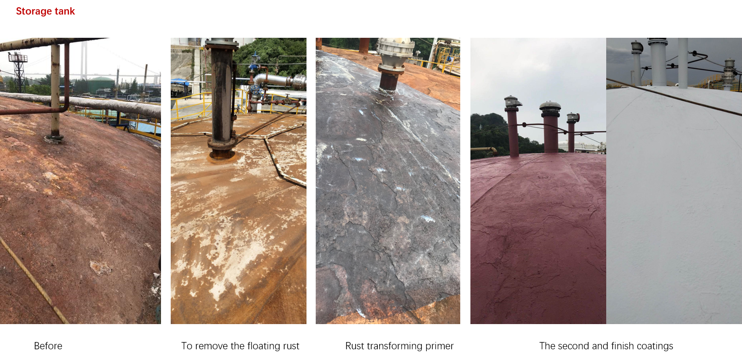 - Rust transforming coating which can avoid mechanical polishing or sanding, thus result in the better safety, especially in petrochemical industry;