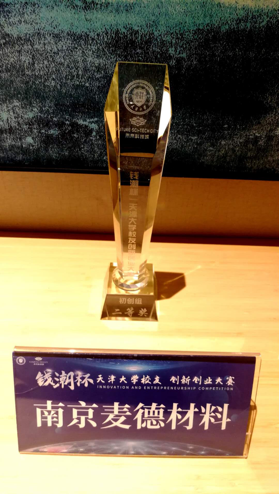 天津大學(xué)校友創(chuàng)新創(chuàng)業(yè)“錢潮杯”大賽中麥德材料獲得二等獎