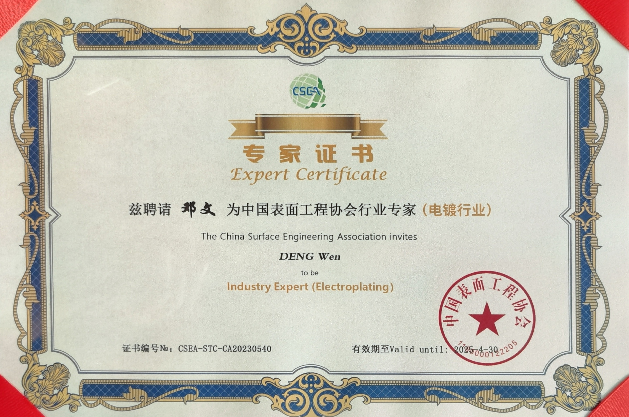 此次鄧文先生被聘為該協(xié)會行業(yè)專家,也是對于公司在材料和材料表面處理行業(yè)工作的一個認可。