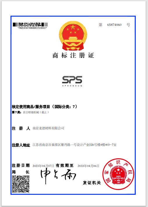 打造以專利做為公司的矛,商標(biāo)做為公司的鎧甲的戰(zhàn)隊,在科技競爭的時代筑起屬于公司核心競爭力的系列護(hù)城河。多年經(jīng)營和用心打造的兩個品牌商標(biāo):SPS 和 V-MTeck獲得批準(zhǔn)。